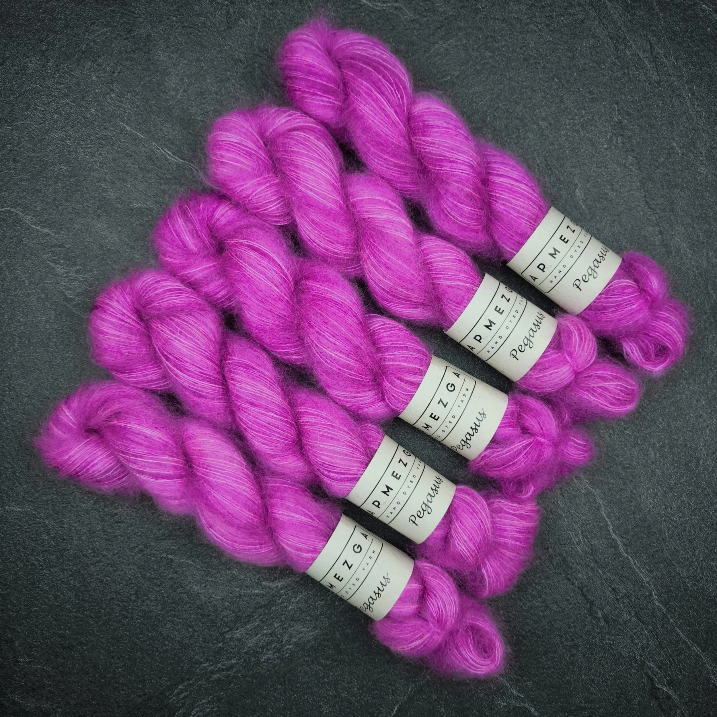 Hand dyed kid mohair with silk yarn.