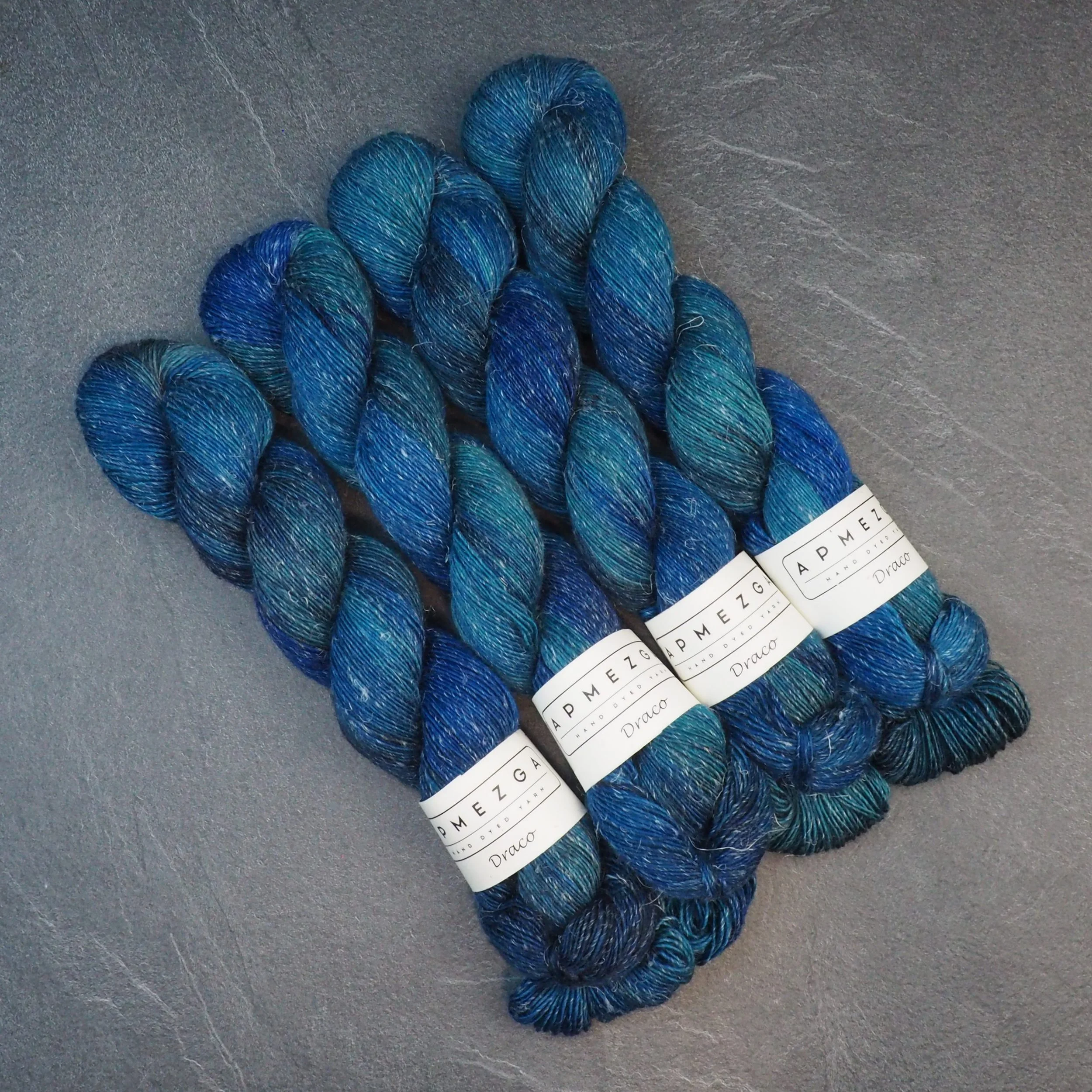 Hand Dyed Baby Alpaca, Mulberry Silk and Cashmere yarn.